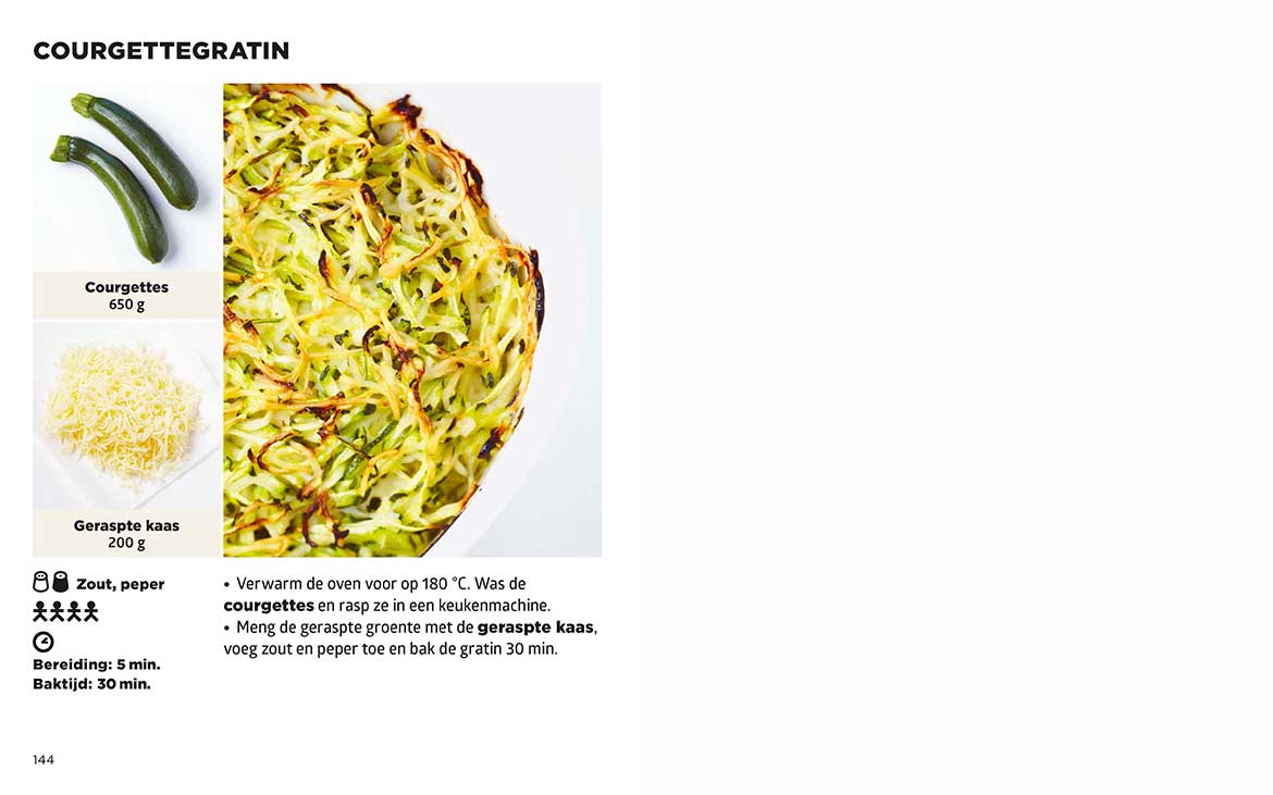 Het recept voor deze courgette gratin, met slechts twee ingrediënten, komt uit Het allermakkelijkste kookboek ter wereld van chef-kok en (food)fotograaf Jean-François Mallet.