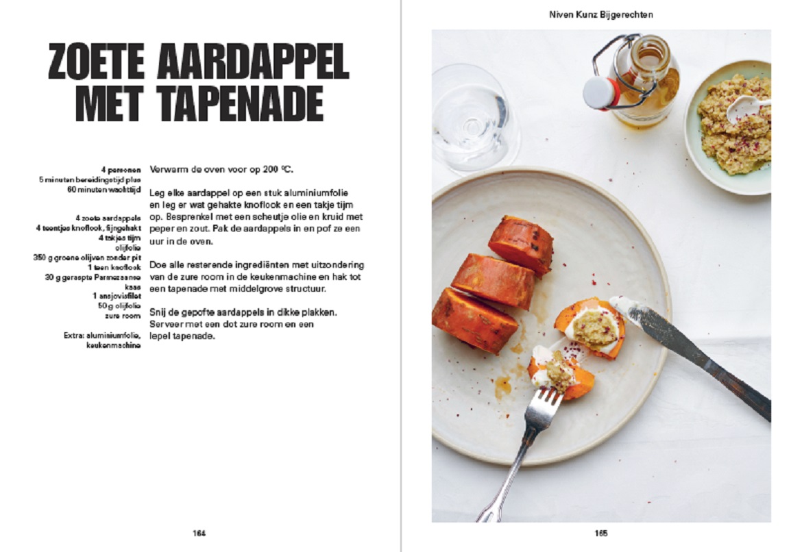 Het recept voor deze gepofte zoete aardappel met tapenade komt uit het boek Groente! van sterrenchef Niven Kunz.