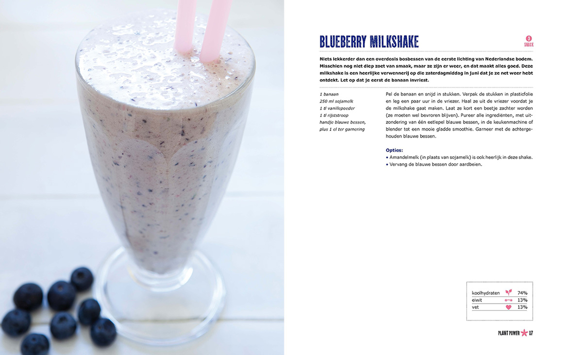 Dit recept voor een veganistische milkshake bosbessen komt uit het boek Plant Power van Lisette Kreischer. Trendsetter Lisette Kreischer laat in Plant Power zien hoe je als vegan, vegatariër of flexitariër superfit en gezond kunt leven. Wat denk je van heerlijke shakes en smoothies als de beauty berry booze, of The Dutch Weed burger? Van cranberry’s en lijnzaad tot gojibessen en chiazaad, en boordevol heerlijke groente en fruit. Je voelt het: the power of plants!