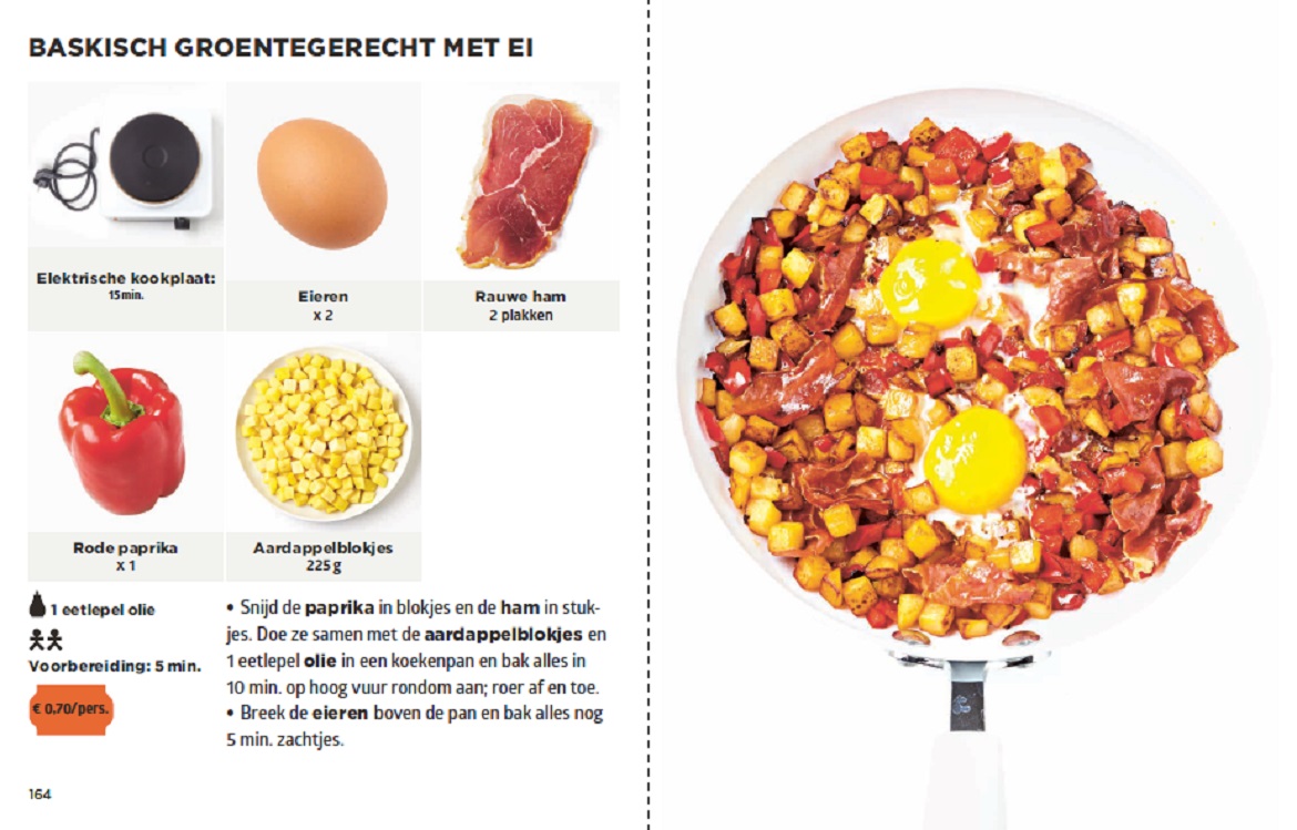 Het recept voor dit Baskische groentegerecht met ei komt uit Het allermakkelijkste studentenkookboek ter wereld van chef-kok en (food)fotograaf Jean-François Mallet.