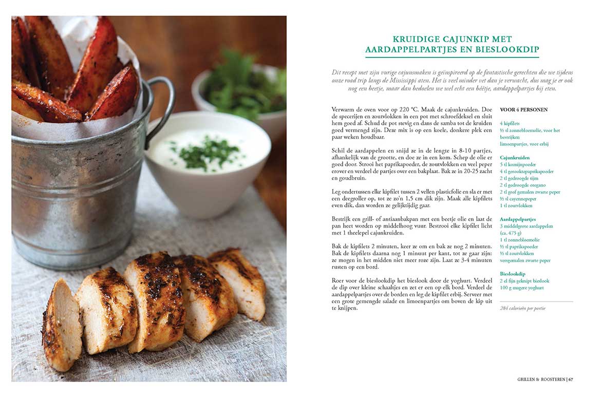 Over dit recept schrijven ze: “Dit recept met zijn vurige cajunsmaken is geïnspireerd op de fantastische gerechten die we tijdens onze road trip langs de Mississippi aten. Het is veel minder vet dan je verwacht, dus mag je er ook nog een beetje, maar dan bedoelen we wel echt een béétje, aardappelpartjes bij eten.”