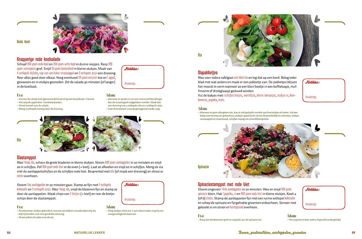 Het recept voor deze rode kool salade met winterpeen en boerenkool komt uit het boek Natuurlijk lekker van Wijnanda Hogendoorn. Het boek bevat meer dan 200 makkelijk te bereiden recepten volgens het Genesis-principe: natuurlijke voedingsmiddelen vol vitaminen en mineralen. Denk daarbij aan (onbewerkte) granen, bonen en peulvruchten, noten en zaden, groenten en fruit, kruiden en specerijen. Met deze ingrediënten bereid je talloze heerlijke gerechten voor ontbijt, lunch, diner en tussendoor voor het hele gezin.