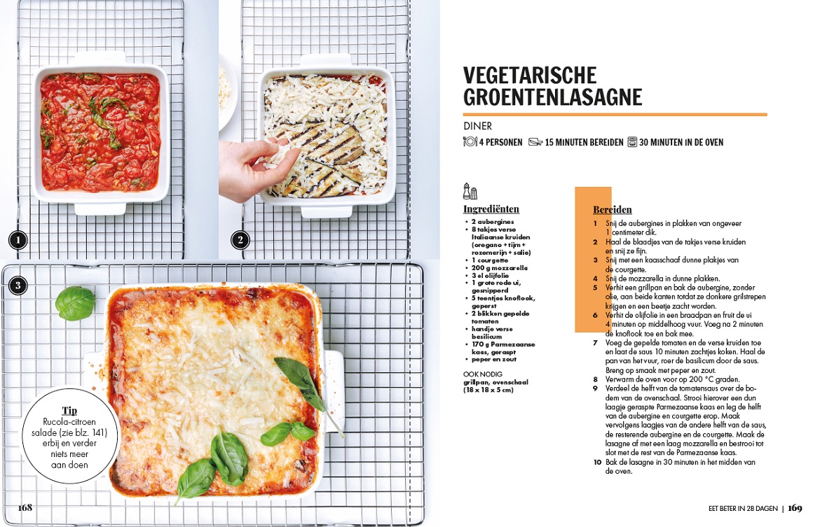 Het recept voor deze vegetarische groentenlasagne komt uit het boek Eet beter in 28 dagen van dokter Tamara de Weijer.