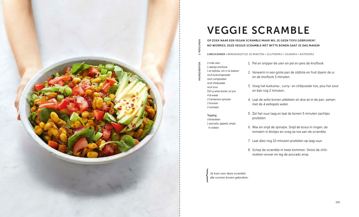 Het recept voor deze veggie scramble komt uit het (kook)boek Easy Vegan 2 van Living the Green Life.
