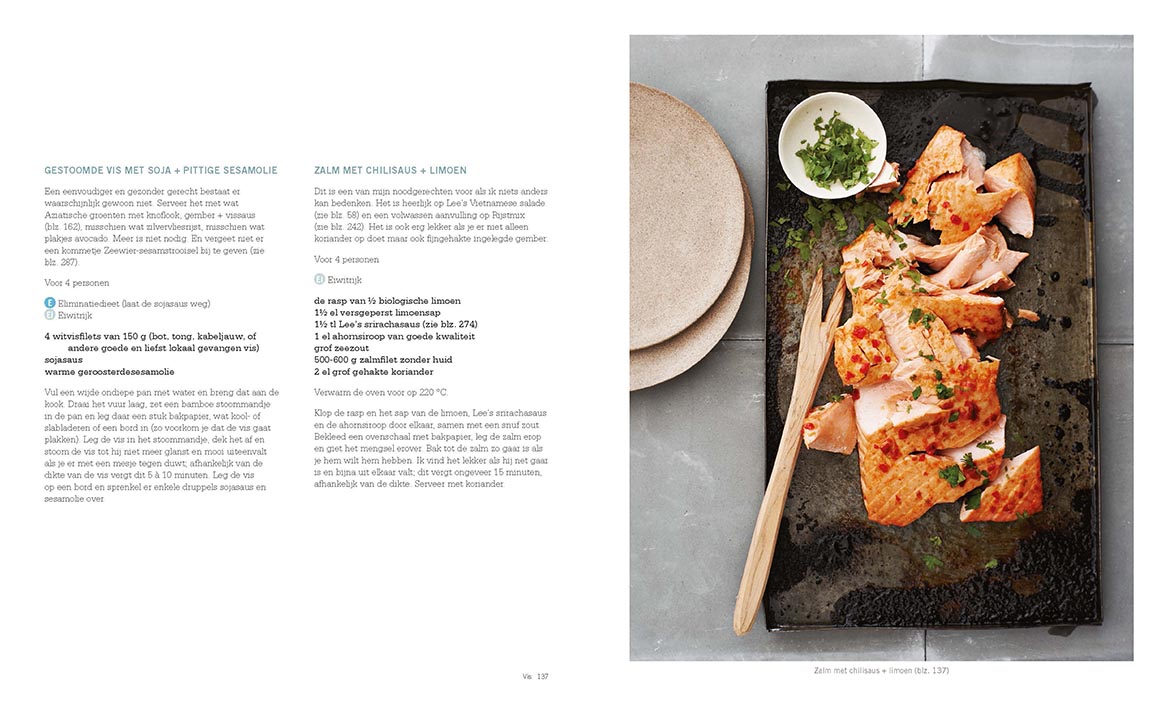 Het recept voor deze zalm uit de oven met chilisaus + limoen komt uit het boek (H)eerlijk van Gwyneth Paltrow, model, actrice en oprichter van online community GOOP. Ze schrijft erover: “Dit is een van mijn noodgerechten voor als ik niets anders kan bedenken. Het is heerlijk op Lee’s Vietnamese salade en een volwassen aanvulling op Rijstmix (zie recept in het boek). Het is ook erg lekker als je er niet alleen koriander op doet maar ook fijngehakte ingelegde gember.”