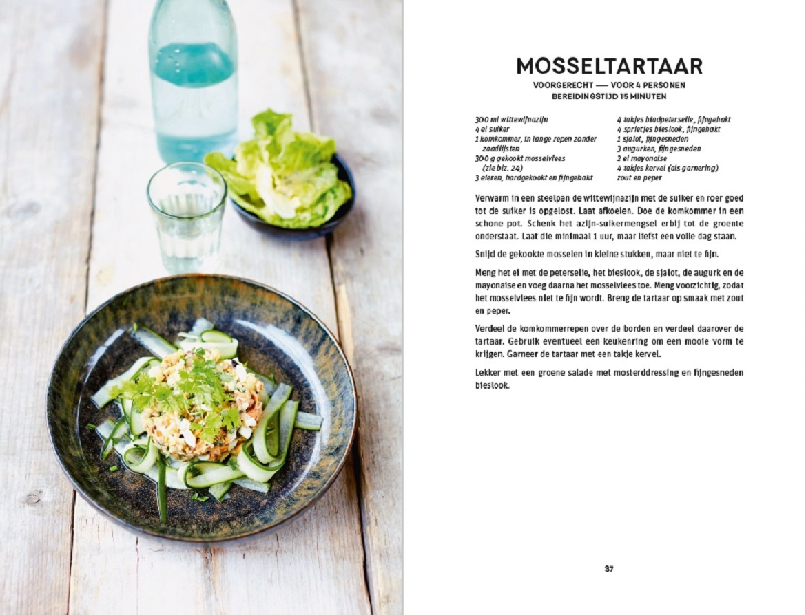 Het recept voor deze mosseltartaar komt uit Het Zeeuwse mossel kookboek van viskenner en oprichter en eigenaar van Fish Tales Bart van Olphen. Lekker met een groene salade met mosterddressing en fijngesneden bieslook.