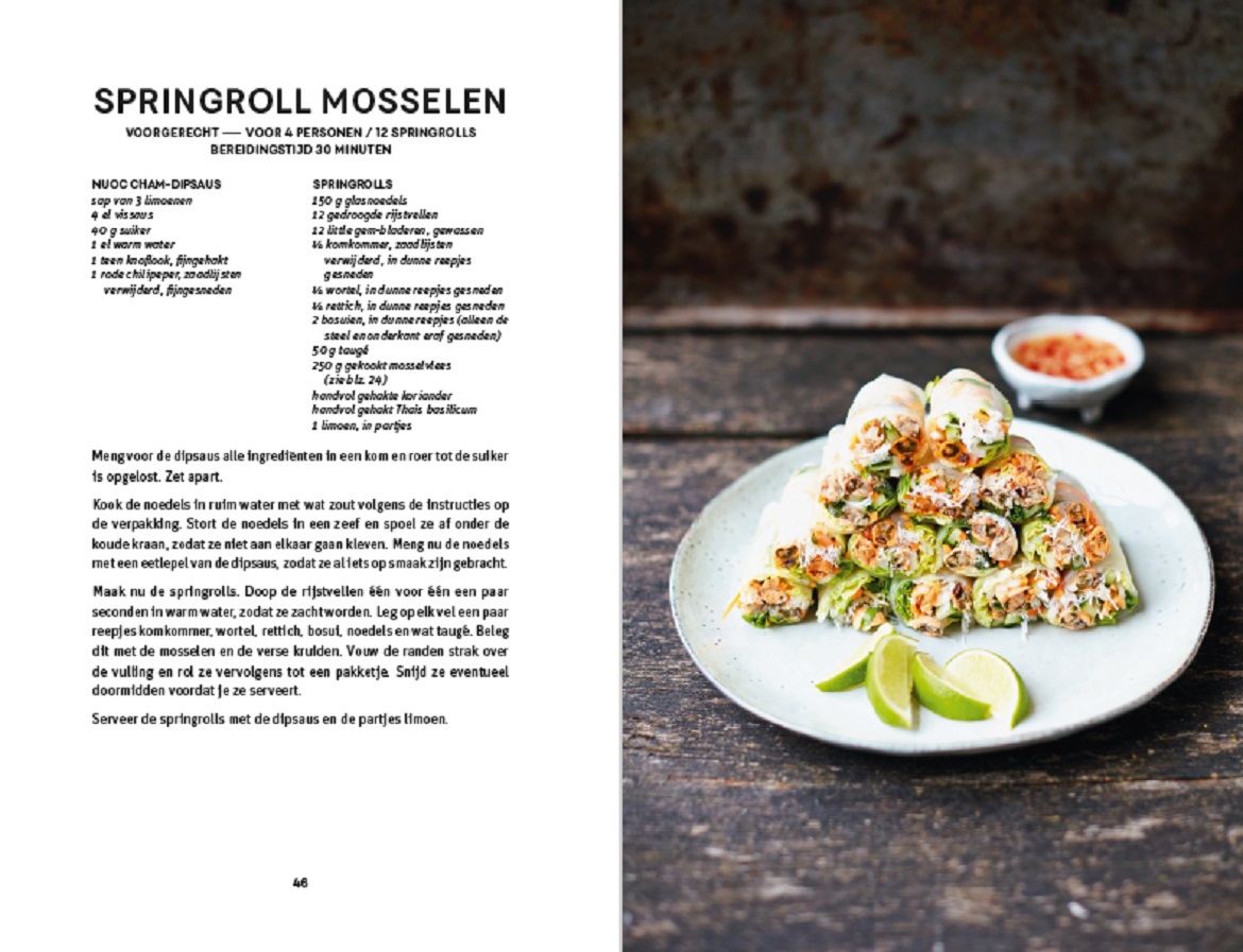 Het recept voor deze springroll mosselen komt uit Het Zeeuwse mossel kookboek van viskenner en oprichter en eigenaar van Fish Tales Bart van Olphen.