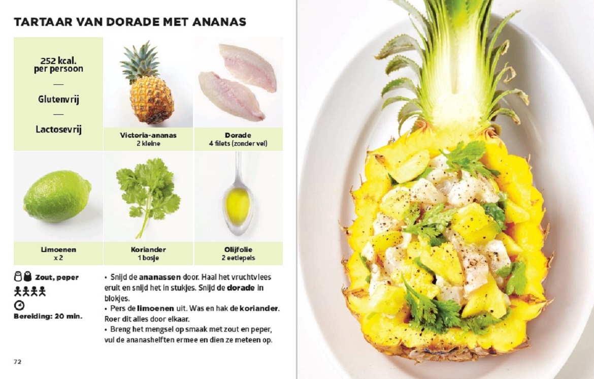 Het recept voor deze tartaar van dorade met ananas komt uit Het allermakkelijkste kookboek ter wereld light van chef-kok en (food)fotograaf Jean-François Mallet.