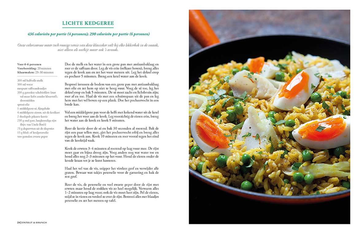 Het recept voor deze lichte kedgeree, een Engels ontbijtgerecht van rijst en vis, komt uit het boek Echte mannen dieet beter (w)eten, beter wegen van The Hairy Dieters. The Hairy Dieters, Si & Dave, vielen dankzij hun eerste boek (Echte mannen dieet voor iedereen met stevige trek) 20 kilo af. En de kilo’s bleven eraf. Het belangrijkste: een dieet moet op de eerste plaats fantastisch lekker zijn. Volop inspiratie daarvoor in hun tweede boek!